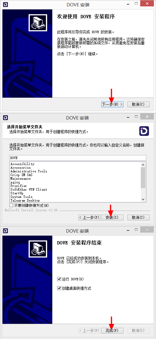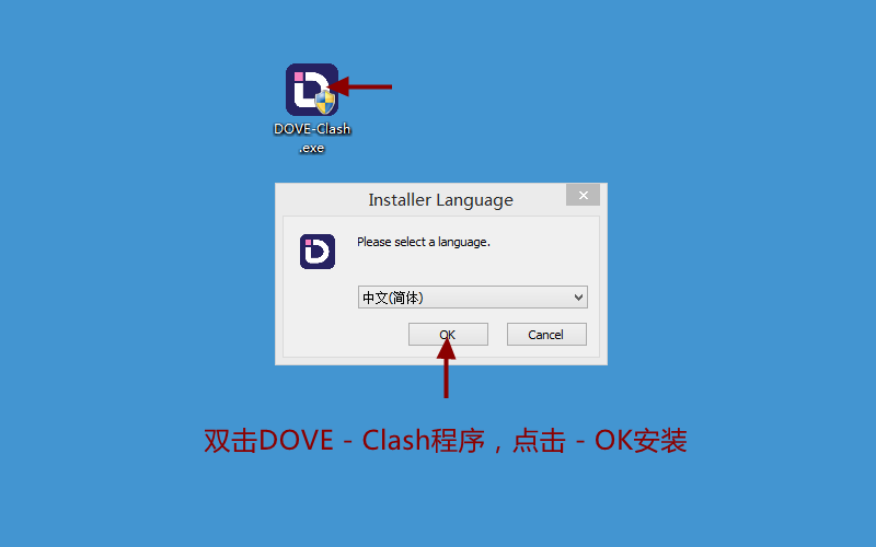 第2步:双击运行 - DOVE_2程序,点击 - OK进行安装(如图)