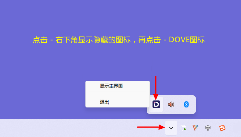 如要退出客户端:在电脑右下角,右键点击图标可以退出DOVE客户端